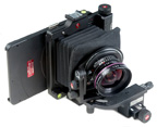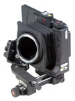 Flexi Maxi Bellows. With micrometric adjustments. Adds swing/tilt/shift to rise/fall movements of Bicam, and enables the use of Schneider and Rodenstock lenses in normal Copal #0 mounts (instead of special Silvestri mounts). For this purpose, the user fits each lens with a bayonet adapter ring. (Note: Schneider 24mm and 35mm lenses require special Silvestri mount and board; see below.) Weighs 1.6 lb. |